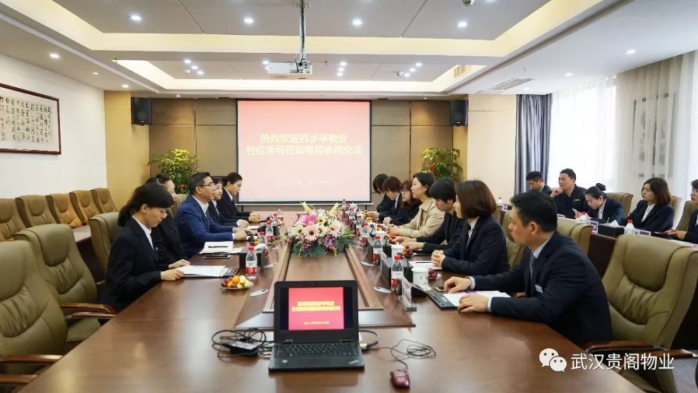 3月27日上午9時,百步亭物業(yè)總經(jīng)理曹曉莉,總經(jīng)理助理吳飛、夏明媚等一行12人蒞臨武漢貴閣物業(yè)參觀交流,公司董事長桂友發(fā)、董事長助理王朝暉、副總經(jīng)理程春玲、總經(jīng)辦主任謝謙、禮儀部部長李蘭蘭進行了熱情接待。